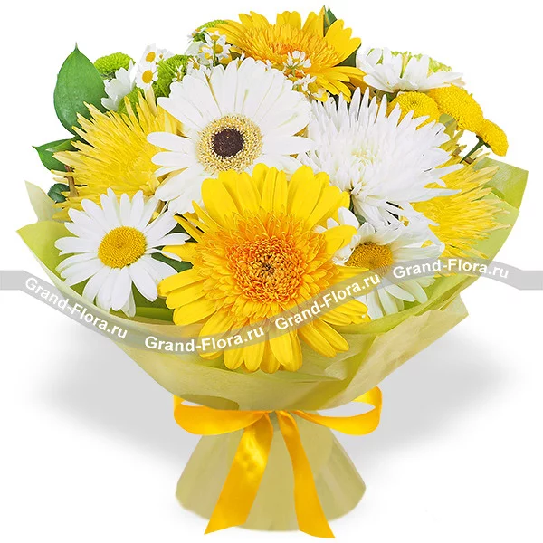 Уточняйте наличие ромашек у операторов. Возможна замена на ромашковидную хризантему!