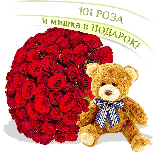 101 роза + Мишка в подарок