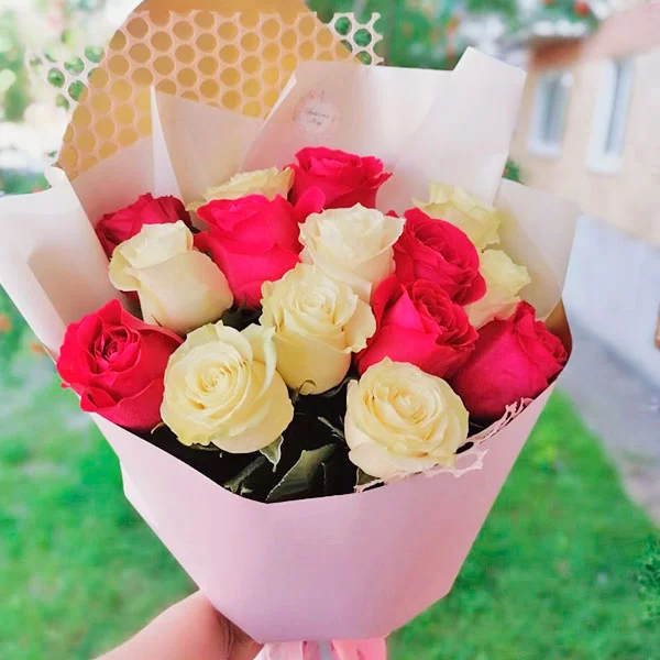 Алена / г. Тарко-Сале / 12.03.2021Оценка букета:Отличные розы! Розовые по оттенку немного ярче, чем на фото, но букет смотрится просто превосходно.Не успевала заехать за букетом сама и заказала доставку чтобы сегодня вечером вручить на юбилее крёстной. Я очень довольна! Спасибо за приятный сервис, доставку в срок и свежие цветы.