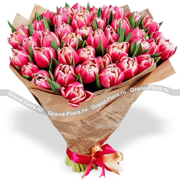 Букет розовых тюльпанов в упаковке - 51 тюльпан