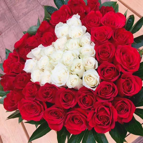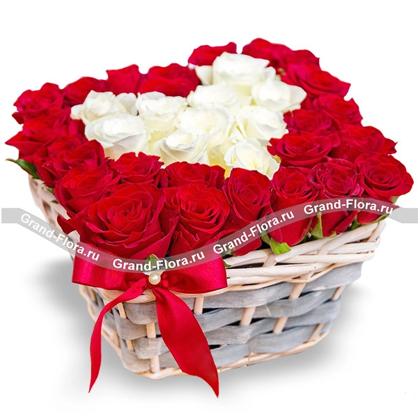 Корзина с белыми и красными розами - Дама сердца