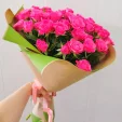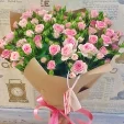 Доставка в указанное время, красивый букет, но розочки немного отличаются по предупредили до доставки, прислали фото. В целом довольна работой магазина.
