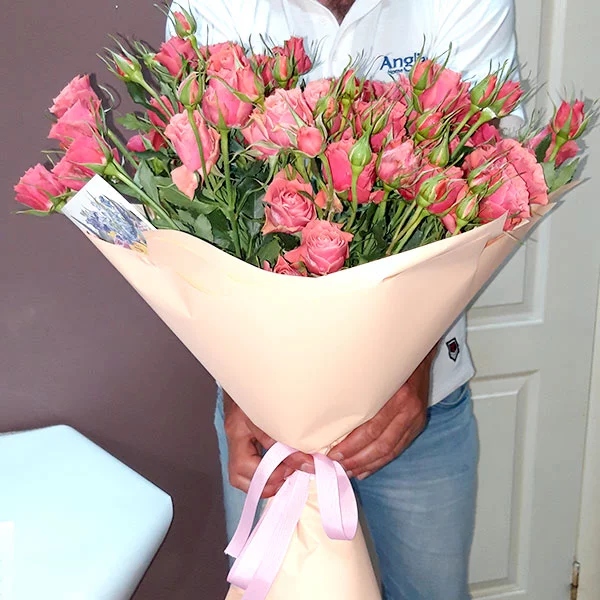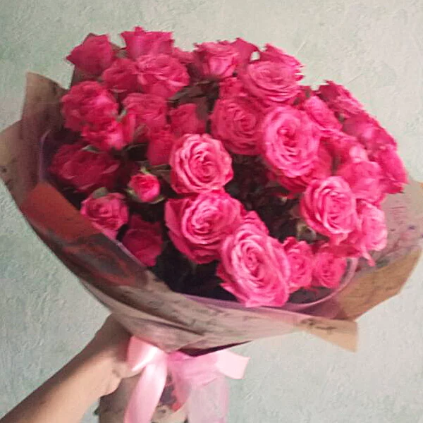Оформил вчера вечером заказ на кустовые розы 25 шт, мне перезвонили из салона и сообщили, что в таком количестве роз этого цвета уже нет. Немного огорчился, но флорист предложил рассмотреть варианты по замене на микс нескольких видов роз. Так как мне было непонятно, как это будет смотреться, мне прислали несколько вариантов букетов на выбор и, надо сказать, вполне неплохих! В итоге выбрал букет как и предложил флорист из розовых, белых и малиновых кустовых роз- как раз в таком сочетании 25 роз получилось сделать. Очень рад доставке. Спасибо, букет привезли роскошный!