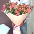 роза кустовая розовая - 25 шт, упаковка, лента розовая. Примерный размер: 45Х45 см.