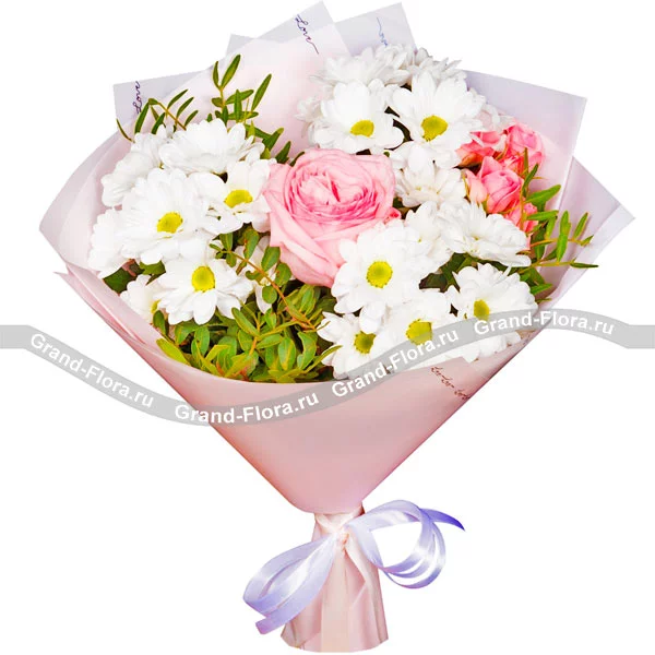 Весенний меланж - букет из роз и хризантем