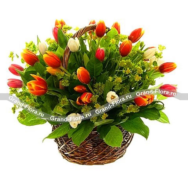 Легкая цветочная корзина из красных и белых тюльпанов – это великолепный подарок который поднимет настроение и очарует того, кому он предназначен. Заказав такие цветы с доставкой в нашей службе доставки букетов, вы вдохнете глоток весеннего тепла в комнату близкого вам человека.